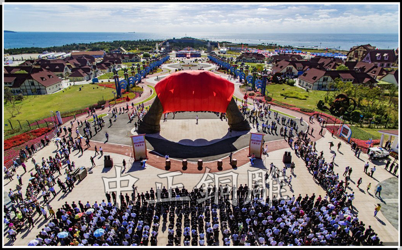 安装于青岛市金沙滩啤酒节黄岛广场,雕塑总高13.8米,重35吨,历时3个月完工。