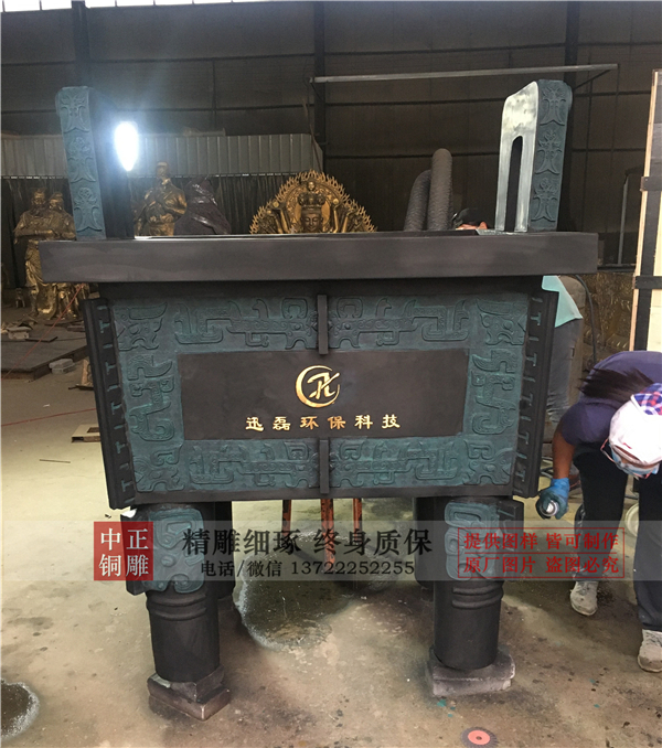 我厂是一家大型铜鼎生产厂家,生产的这尊大型铜鼎现已发往临汾市永和县坡头乡迅磊环保科技有限公司,欢迎有需要定制铜鼎的新老客户前来厂家实地考察。